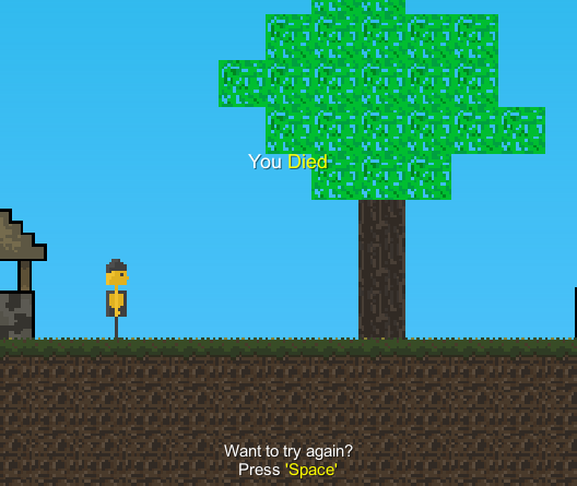 وأخيرًا، قمت بإنشاء العلامات التي تظهر على الشاشة باستخدام UI Canvas لإظهار وقت موت اللاعب وكذلك إشارة إلى الزر الذي يجب الضغط عليه لإعادة تشغيل المستوى: