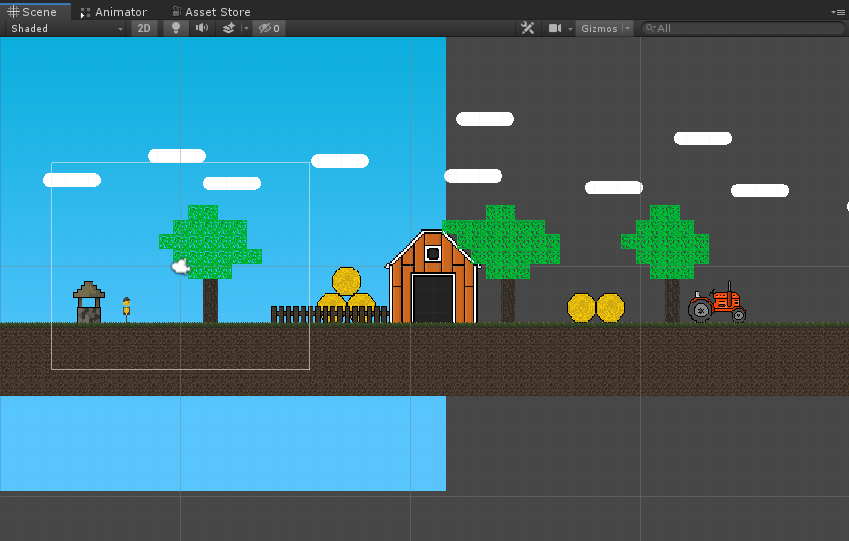 الآن بعد أن أصبح اللاعب والأعداء جاهزين، انتقلت إلى إنشاء المستوى الأول، والذي قررت أن أجعله ذا طابع المزرعة. لذا بدأت العمل على إنشاء كل الشخصيات الضرورية للمستوى: