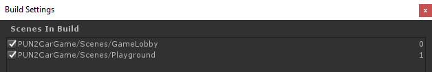 - أضف كلاً من GameLobby وPlayground Scenes إلى إعدادات الإصدار: