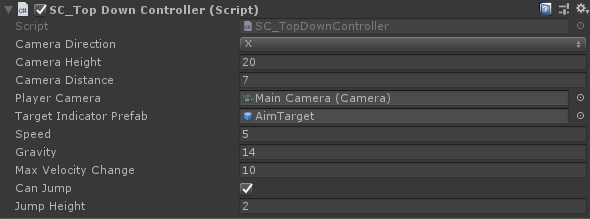- وأخيرًا، قم بتعيين المتغيرات "Player Camera" و "Target Indicator Prefab" في SC_TopDownController