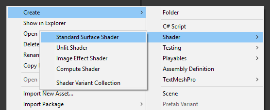 - انقر بزر الماوس الأيمن على عرض المشروع -> إنشاء -> تظليل -> تظليل السطح القياسي