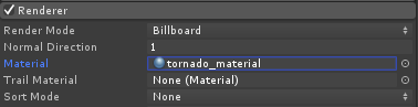 - قم بتعيين مادة tornado_material إلى وحدة العارض: