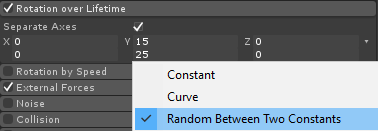 - في نظام الجسيمات، قم بتمكين هذه الوحدات: الانبعاث، الشكل، السرعة على مدى العمر، اللون على مدى العمر، الحجم على مدى العمر ، الدوران على مدار العمر، القوى الخارجية، العارض.
