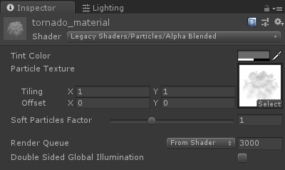 - قم بتغيير التظليل الخاص به إلى "Legacy Shaders/Particles/Alpha Blended"